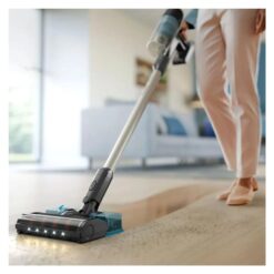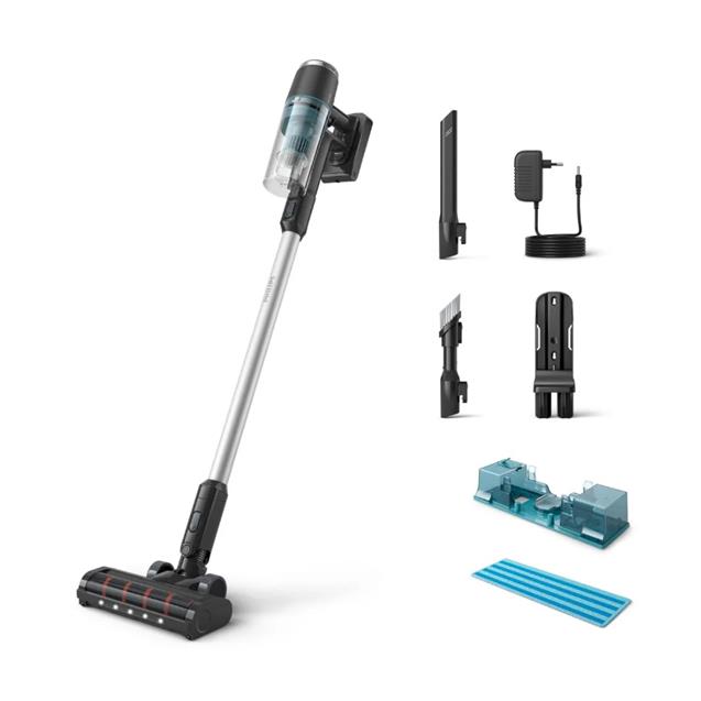 La aspiradora inalámbrica Philips Serie 3000 ofrece una limpieza eficiente y versátil en todo el hogar. Su diseño ergonómico incluye una boquilla LED que revela el polvo oculto, permitiendo una limpieza precisa y guiada. La boquilla de precisión se desliza fácilmente hasta 1 mm de la pared, facilitando el acceso a rincones difíciles. Además, cuenta con un módulo Aqua que permite aspirar y trapear al mismo tiempo. La aspiradora se convierte fácilmente en un dispositivo de mano, ideal para diferentes superficies, y su batería desmontable de 25,2 voltios ofrece mayor comodidad para una limpieza prolongada. Equipada con tecnología PowerCyclone 8, esta aspiradora elimina eficazmente el polvo y la suciedad, haciendo un uso óptimo de la batería. Su motor digital garantiza una mayor durabilidad, mientras que el sistema de filtración de 3 etapas atrapa el polvo de forma segura. Con hasta 60 minutos de autonomía¹, proporciona una limpieza completa sin interrupciones. La combinación de succión potente y eficiencia energética la convierte en una herramienta indispensable para mantener el hogar impecable.