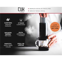 La cafetera Gadnic CUK tipo Aeropress es una solución manual, compacta y eficiente para preparar café de alta calidad en pocos minutos. Su sistema de presión permite obtener una bebida intensa, con cuerpo y bajo nivel de acidez, ideal para quienes buscan una experiencia similar al espresso pero con mayor versatilidad.