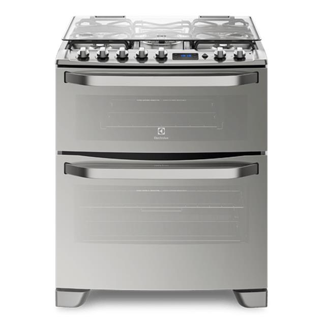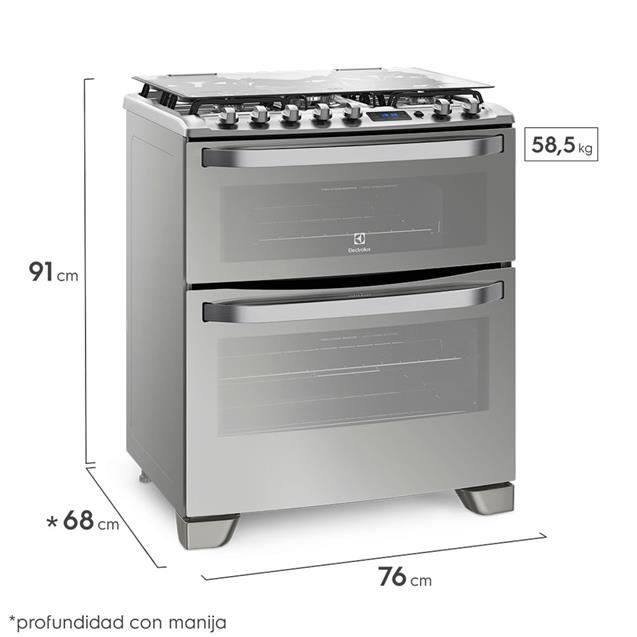 Moderna y segura, la Cocina Doble Horno Electrolux (76DXR) cuenta con dos hornos independientes a gas y un grill eléctrico para que puedas gratinar y dorar preparaciones y darle un toque especial a tus alimentos en el tiempo justo, gracias a su temporizador digital y reloj que facilita el control del tiempo de cocción.