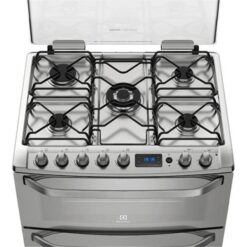 Cuenta también con cinco hornallas, una de ellas con función triple llama, que proporciona mayor rapidez en la cocción.