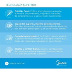 -NO FROST: Evita la acumulación de escarcha durante el funcionamiento, mejorando la calidad de congelamiento y conservando los alimentos más frescos.