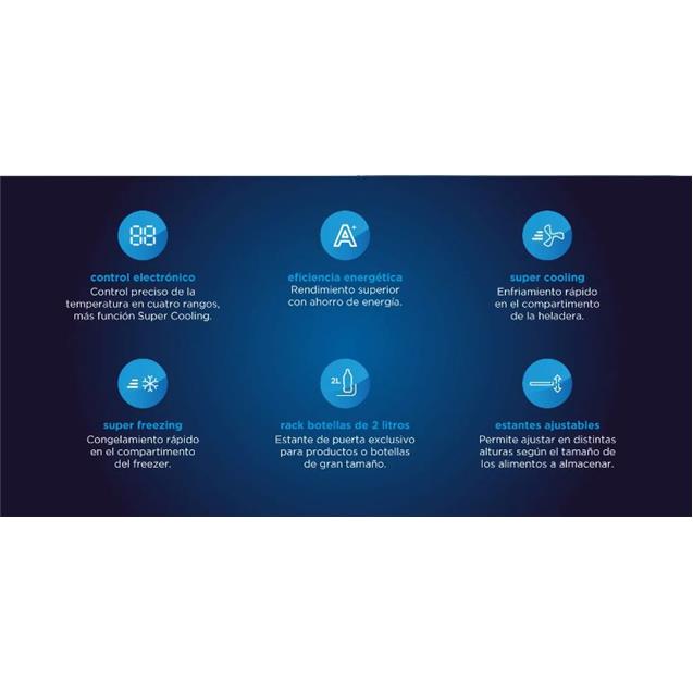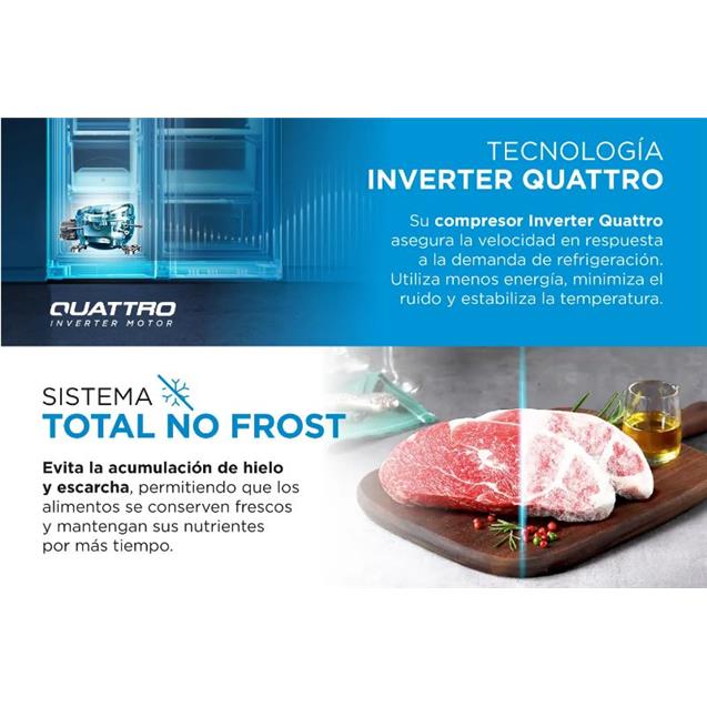 Su panel digital en puerta, el compresor Inverter de bajo consumo y su moderno diseño gris la convierten en una excelente elección para familias numerosas o quienes aman tener todo a la vista y bien conservado.