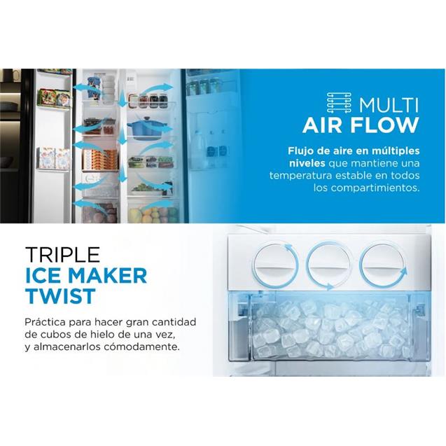 La heladera Midea MDRS710FGE46ADW combina tecnología, capacidad y estilo en un formato side by side ideal para quienes buscan organización y rendimiento. Diistribución inteligente y tecnología No Frost, mantiene tus alimentos siempre frescos sin necesidad de descongelar.