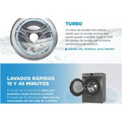 El lavarropas Midea MF200W80 de 8?kg con centrifugado de 1400?rpm combina eficiencia, tecnología y diseño moderno en un elegante color titanium. Cuenta con un motor Inverter Quattro que reduce el consumo energético hasta un 70?%, disminuye el ruido y extiende la vida útil del equipo. Su panel frontal incorpora el sistema Lunar Dial, una perilla digital con pantalla integrada que facilita el manejo de sus múltiples programas de lavado. Entre sus funciones destacadas se encuentra el sistema Steam Care, que utiliza vapor para eliminar hasta el 99,99?% de bacterias, ideal para prendas delicadas y ropa de bebés. Además, incluye conectividad Wi-Fi para controlarlo desde la app MSmartHome, permitiendo iniciar ciclos, personalizar lavados o recibir notificaciones desde el celular. Su tambor de acero inoxidable cuenta con función de autolimpieza, y el equipo ofrece programas como lavado rápido, eco, lana, ropa deportiva y anti-alergias. Con eficiencia energética A+++, bajo nivel de ruido y múltiples funciones de cuidado de la ropa, es una excelente opción para quienes buscan un lavarropas moderno, confiable y fácil de usar.