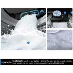 Con la tecnología Eco Bubble vas a poder limpiar la ropa usando hasta un 55% menos de energía, mientras que con BubbleStorm el jabón penetra en la tela 2,5 veces mas rápido. Por otro lado, cuenta con Dual Storm que gira y frota prendar para permitir una limpieza eficaz. También cuenta con Deep Softener, Final diferido, Intensive Wash para eliminar manchas difíciles y Magic Filter que recoge eficazmente la pelusa y partículas que salen de la ropa.