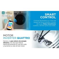 La Lavasecadora Midea MF200D120B / WB combina las funciones de lavado y secado en un solo equipo (12 kg de lavado / 8 kg de secado) con motor inverter que ofrece mayor eficiencia energética, menor ruido y larga vida útil. Gracias a su conectividad WiFi y al panel digital con perilla-display “Lunar Dial”, podés seleccionar fácilmente ciclos como lavado rápido, modo vapor (“Steam Care”) o ciclo de limpieza automática del tambor (“Auto Clean”). Además, cuenta con sistemas enfocados en higiene como “Health Guard” que ayudan a mantener el tambor limpio y libre de bacterias. Este modelo es ideal para hogares grandes que buscan un equipo versátil, cómodo y moderno, que permite lavar y secar grandes cantidades sin necesidad de múltiples aparatos. Su construcción robusta, con dimensiones amplias y peso importante, lo sitúan como una opción premium, que requiere espacio, pero entrega gran capacidad y funciones avanzadas.