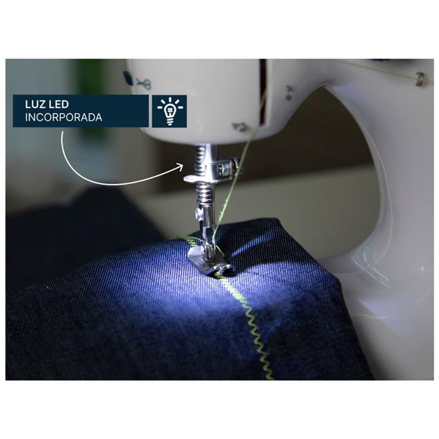 La función reversa se utiliza para asegurar las últimas puntadas. Para rematar la costura y evitar deshilaches o puntadas sueltas. Tiene luz led incorporada, para mayor visibilidad de tu costura y el enhebrado de la aguja.