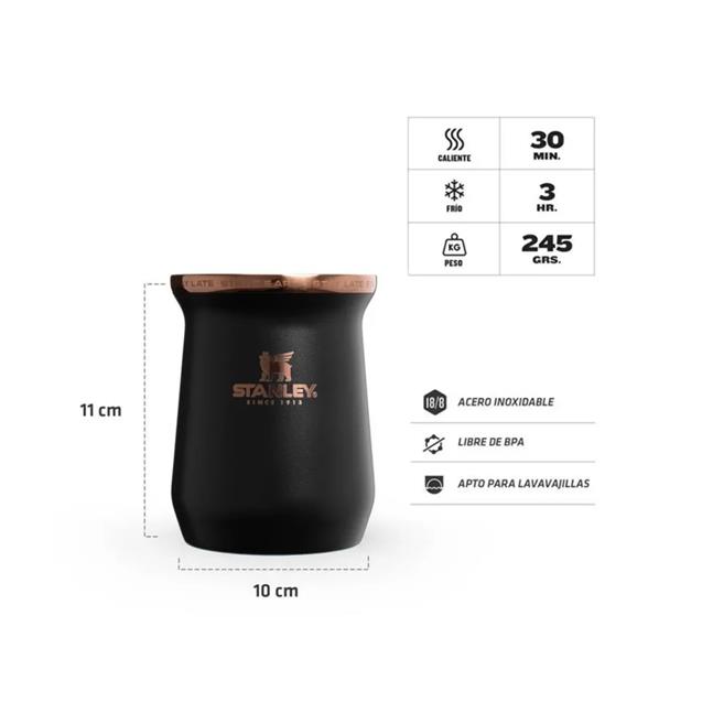 Esta colección Messi x Stanley 1913 celebran un legado construido a base de años de trabajo duro y dedicación y un poco de magia. El Mate Clásico de 236 ml es de acero inoxidable. El aislamiento térmico de doble pared mantiene tu mate a la temperatura ideal para que puedas alimentar tu propia magia dentro y fuera de la cancha.