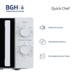 Perfecto para estudiantes, familias pequeñas o para sumar rapidez en tu rutina diaria, el microondas BGH es tu aliado para preparar platos de manera eficiente y segura.