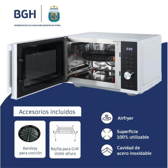 Microondas C/Airfryer Grill Bgh Flat Cook 25 Lts Blanco (B325DFB24)