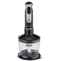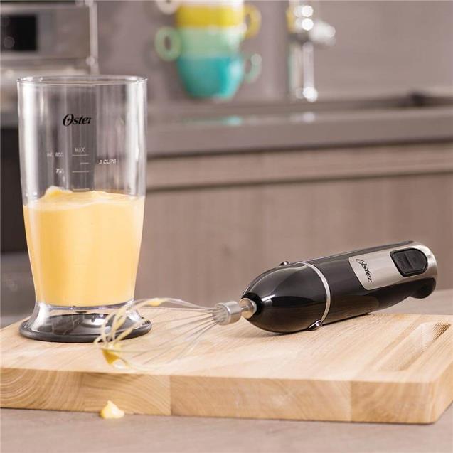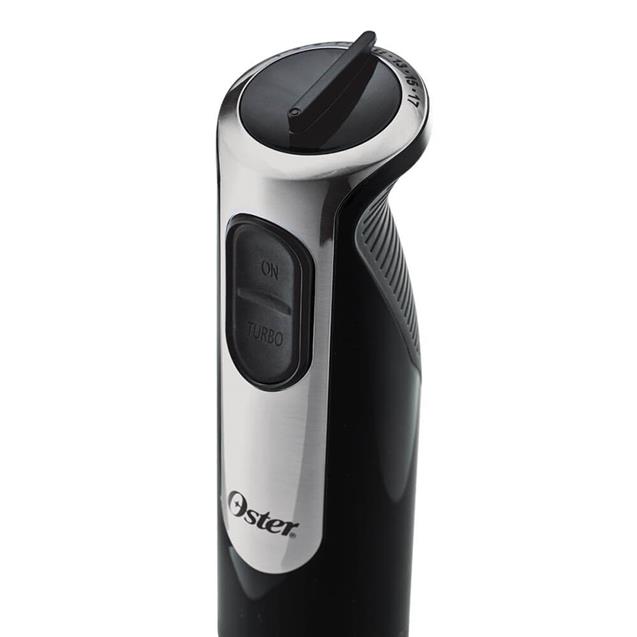 La nueva batidora de inmersión Oster® te permite preparar tus bebidas y recetas favoritas, tales como sopas, puré de tomate, malteadas y mucho más. Su base está diseñada para guardar la batidora y los accesorios, manteniendo el mostrador de la cocina organizado.