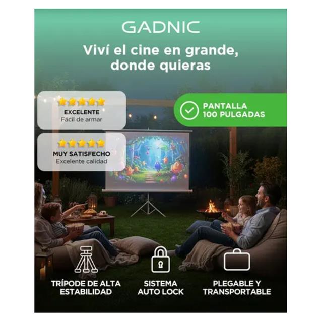 Pantalla Para Proyector Gadnic 100 Pulgadas Tripode 160 Grados Retractil Auto Lock Alta Estabilidad. Gran formato para cine en casa o presentaciones.