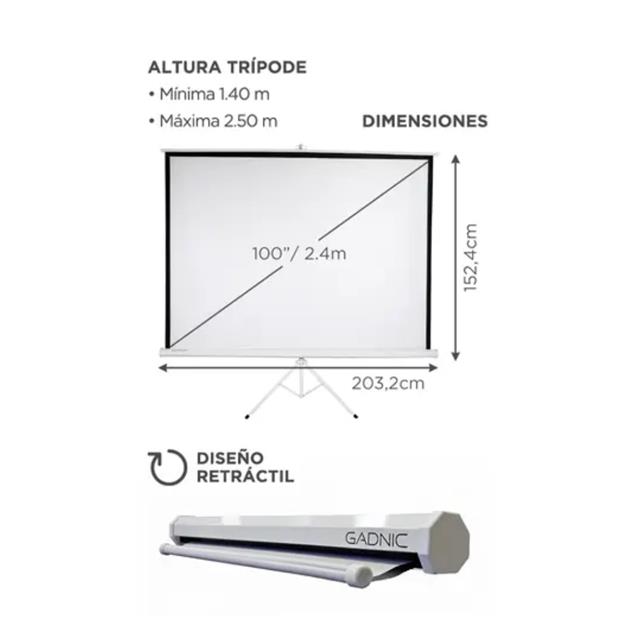 Pantalla Para Proyector Gadnic 100″ C/Tripode 160 Grados Retráctil (PROJ0003)