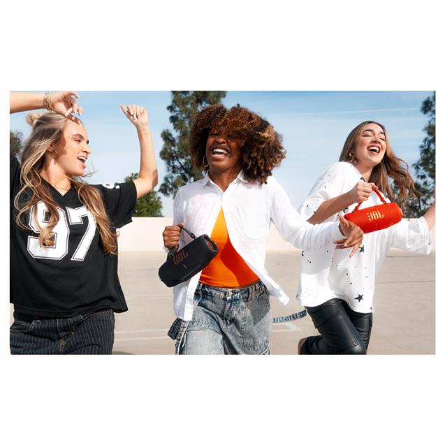 El Charge 6 tiene todo lo que nos gusta, con nuevas vueltas de tuerca, apuestas más altas y un mayor impacto. Con un sonido más potente que nunca, una mejor conectividad, un diseño más robusto y hasta 28 horas de autonomía, el Charge 6 es una bestia del audio portátil. ¿Cómo puede haber aún más sonido en el mismo altavoz portátil icónico? Con un hardware rediseñado y nuestro nuevo JBL AI Sound Boost, un algoritmo de procesamiento de audio inteligente que hemos incluido bajo el capó. ¿Y cuál es el resultado final? El Charge 6 supera con creces su categoría de peso, y llena nuestro espacio con un sonido completo y envolvente, sin ocupar más espacio en nuestra mesa. El Charge 6 es también uno de los altavoces portátiles más resistentes que existen. Es resistente al agua, al polvo y a las caídas, así que aguanta los golpes sin perder el ritmo. Y, fiel a su nombre, el Charge 6 sigue incluyendo una fuente de alimentación integrada para cargar tu dispositivo móvil mientras sigues disfrutando de tu música. ¿Qué podría ser mejor que un nuevo JBL Charge 6 en nuestras vidas? ¿Qué tal dos… o cuatro? Ahora podemos conectarnos sin esfuerzo con otros altavoces JBL compatibles con Auracast™ para recorrer más distancia (y llegar a más oídos) con la misma lista de reproducción, tanto si organizamos la velada más sensacional en una azotea como si animamos a la multitud antes del último torneo de tenis. Así es EL JBL Charge 6. Audio portátil como nunca antes lo habíamos oído.