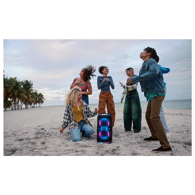 El JBL PartyBox Club 120 convierte cualquier espacio en una fiesta y un ambiente vibrante. El potente sonido JBL Pro llena el ambiente mientras un fascinante espectáculo de luces estrelladas, estelas de luz geniales y efectos estroboscópicos se sincroniza con tu ritmo. Empareja al instante cualquier dispositivo Bluetooth y reproduce tu lista de reproducción favorita para fiestas, o usa las entradas de micrófono y guitarra para compartir tu propio sonido. De cualquier manera, puedes dirigir el ritmo de la fiesta con divertidos efectos interactivos usando la aplicación JBL PartyBox. Un asa ergonómica plegable hace que el PartyBox Club 120 sea fácil de llevar a todas partes, y su construcción a prueba de salpicaduras significa que no se verá afectado por un poco de lluvia. Ofrece hasta 12 horas de reproducción, y si la fiesta sigue animada para entonces, simplemente cambia la batería reemplazable y mantén la música y las luces encendidas. Para disfrutar aún más, empareja dos JBL PartyBox Club 120 en estéreo para un escenario sonoro más amplio, o usa la aplicación JBL PartyBox para conectar varios altavoces compatibles con JBL Auracast de forma inalámbrica. Únete a la fiesta con el JBL PartyBox Club 120.