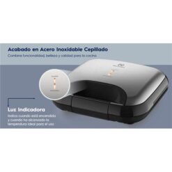 A través de indicadores luminosos se identifica fácilmente cuando la sandwichera está encendida y cuando ha alcanzado la temperatura ideal para el uso