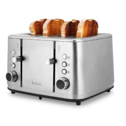 La tostadora ATMA TO9000IP es una opción ideal para quienes buscan practicidad y eficiencia en la cocina. Con capacidad para 4 rebanadas y una potencia de 1850W, permite tostar el pan de manera rápida y pareja. Su diseño en acero inoxidable le da un aspecto moderno y duradero, mientras que las ranuras extra anchas y largas se adaptan a distintos tipos de pan. Cuenta con 7 niveles de tostado, funciones para cancelar, recalentar y descongelar, y controles independientes para cada par de ranuras, lo que brinda mayor versatilidad. Además, incluye bandejas recolectoras de migas removibles que facilitan la limpieza. Ideal para familias o para quienes disfrutan de un desayuno completo todos los días.