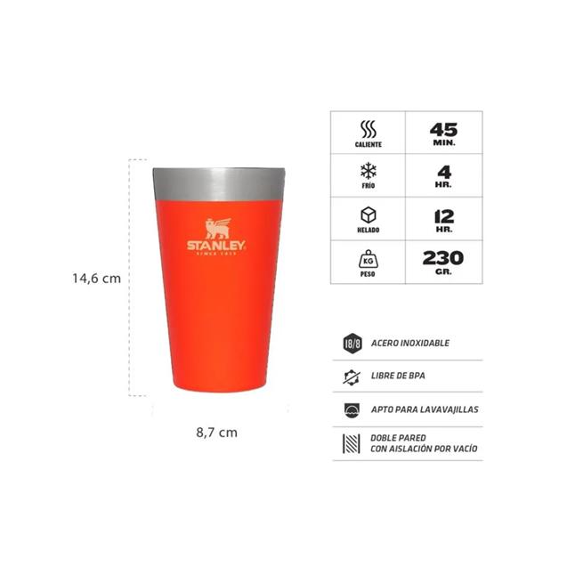 Vaso térmico apilable con doble aislación a prueba de golpes, ideal para que tu cerveza permanezca fría. Son fáciles de transportar, ideales para acampar, cumpleaños o llevar a cualquier ocasión, además se apilan infinitamente para ahorrar espacio en tu cocina. Mantiene tus líquidos calientes durante 45 minutos, fríos durante 4 horas o congelados durante 15 horas. ¡Decile adiós a los vasos desechables!