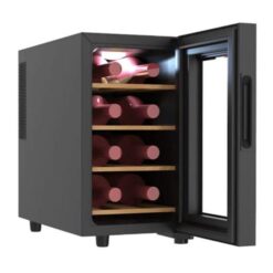 Cava ideal para vinos tintos en condiciones óptimas de guarda. Dadas sus dimensiones puede ir perfectamente sobre un mueble o una mesada. La cava T8 cuenta con capacidad para 8 botellas estándar de 750ml y 30 cm de largo. Este cava tiene como característica principal, sus estantes de madera. La capacidad debe ser tomada como referencia debido al diverso surtido de medidas de botellas.